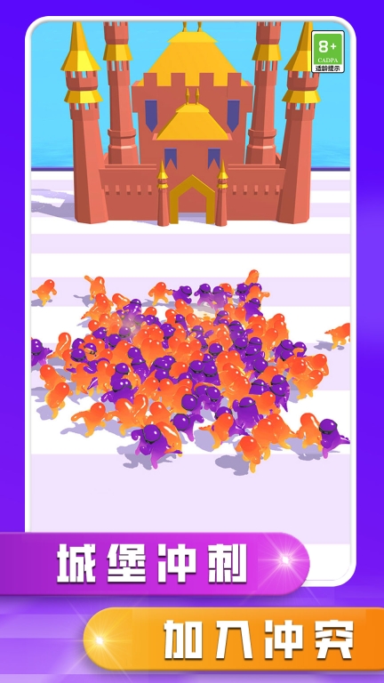 开心来闯关,这是一款玩法极为自由、画质无比流畅的全新休闲益智类游戏。从独特的角色设定到别具一格的操作玩法,开心来闯关都带来了十分新颖的体验。在游戏里,你要操控可爱的果冻人持续向前行进。与此同时,游戏精心设计了大量的障碍,而且每个角色都有着专属的颜色与独特的个人特征,玩起来能让你轻松减压。瞧,在我们面前还会出现一座宏伟的大城堡呢!快来把这款超好玩的手机游戏下载到手机上,尽情畅玩吧。