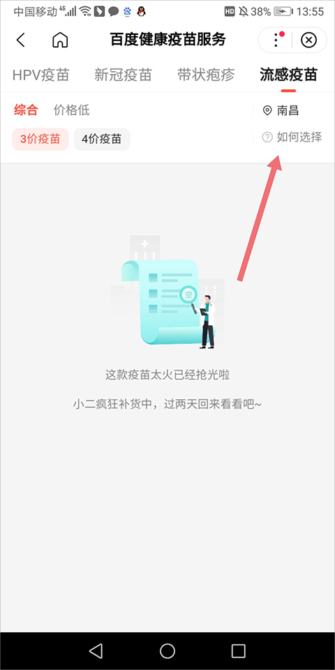 5、在打开的新页面中选择疫苗种类点击,如有不太清楚如何选择的用户可以通过点击其右侧的【如何选择】进行选择方式查阅