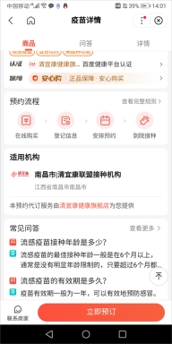 4、或者通过上个页面中下方热门疫苗进行选择点击