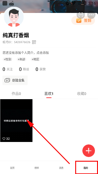 4、所点赞的视频,我们可在主页的“喜欢”中轻松观看