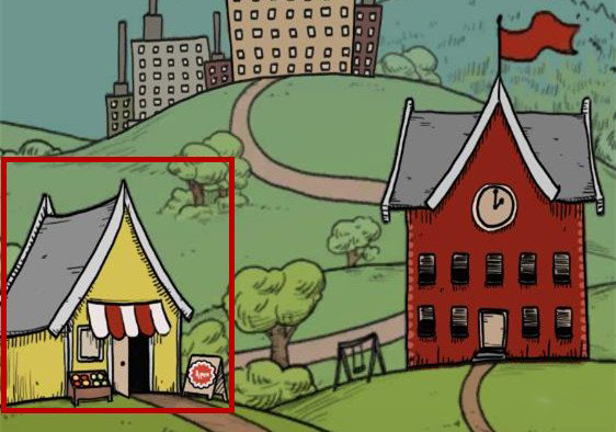 1、玩家需要点击窗外来到小镇,找到学校旁边的商店购买制作蛋糕的材料鸡蛋和面粉。