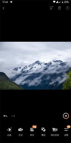 在添加了「覆层」与「相机特效」之后,要是你对图片中这片白茫茫的天空不太满意,反而更青睐「空山新雨后」那般的万里晴空,此时我们便需运用 Pixaloop 的「换天」功能,只需一键操作,就能让天空变得晴朗起来。