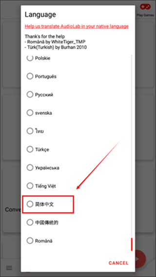 3、随后在语言选项中找到【简体中文】点击确认即可将软件汉化为中文版,就是这么简单快来试试吧!