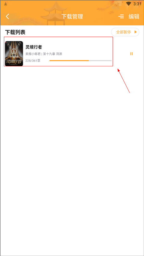 4、最后就可以在下载管理中看到小说正在下载了,等待下载完成即可。