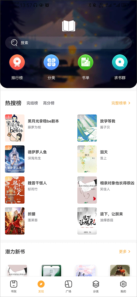 开放广场版块,支持用户发布求书、推书等新话题,找书更自由~
