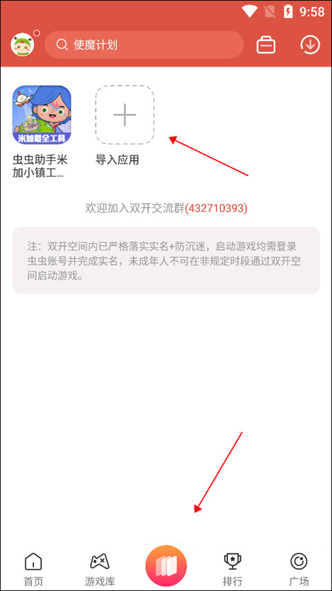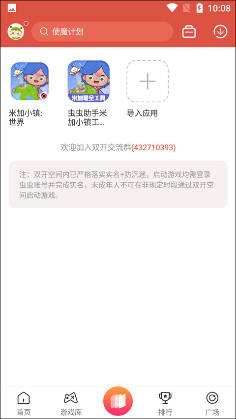 2、也可以先在本地安装游戏,接着打开虫虫助手,进入首页后,点开“双开空间”,点击右上角的“导入本地应用”,随后勾选米加小镇工具,再点击导入就完成了。