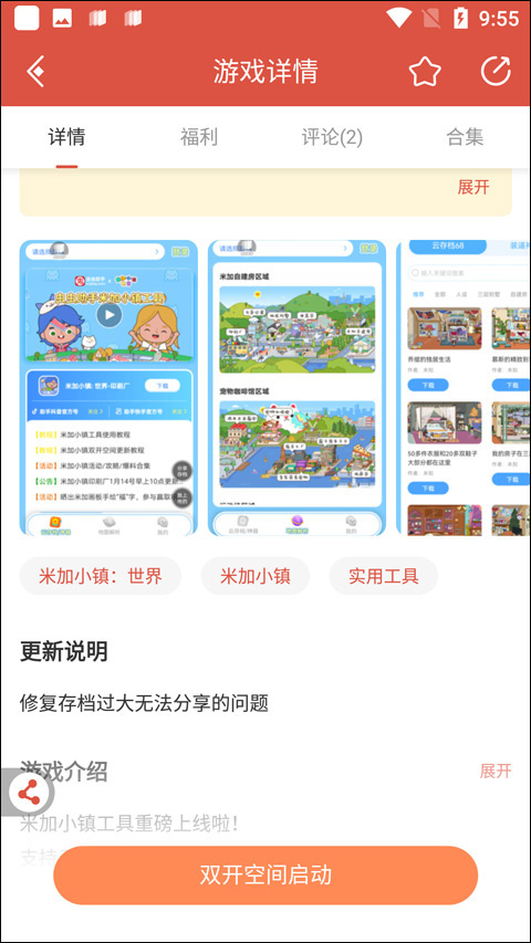 1、于游戏详情页下载游戏及工具时,选取“双开空间启动”,便可打开。