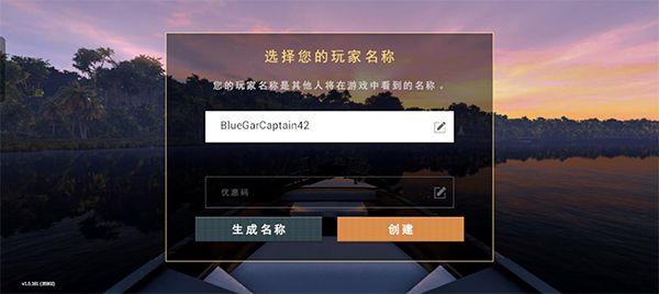 1、当在本站下载并安装好《垂钓星球》手机版后,第一步要做的是创建一个名字。要是不想费脑筋想名字,直接点击旁边的“生成名称”按钮,随后点击“创建”就可以了。