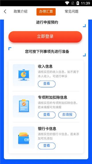 目前,软件支持用户办理个人所得税综合所得年度汇算等纳税申报、专项附加扣除信息填报、收入纳税明细查询、异议申诉、涉税证明材料上传、委托代理等涉税业务。个人所得税退税app为保障用户个人权益,运用应用大数据、云计算技术等,为自然人提供办税预填表、政策风险提示和税收优惠提醒等各类服务,助力纳税人清晰明了地交税,每笔税务情况都一目了然,不产生糊涂账。有需求的用户赶紧下载吧!