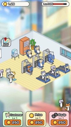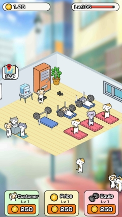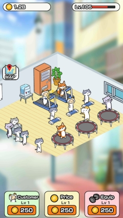 在游戏里,所有角色均是可爱的动物形象。玩家要设计各式各样的健身设备,以此吸引更多可爱猫咪前来健身,从而赚取更多财富。游戏采用极具卡通化的图形,趣味性十足,面向所有年龄段的玩家开放,开启超级减压的健身之旅。