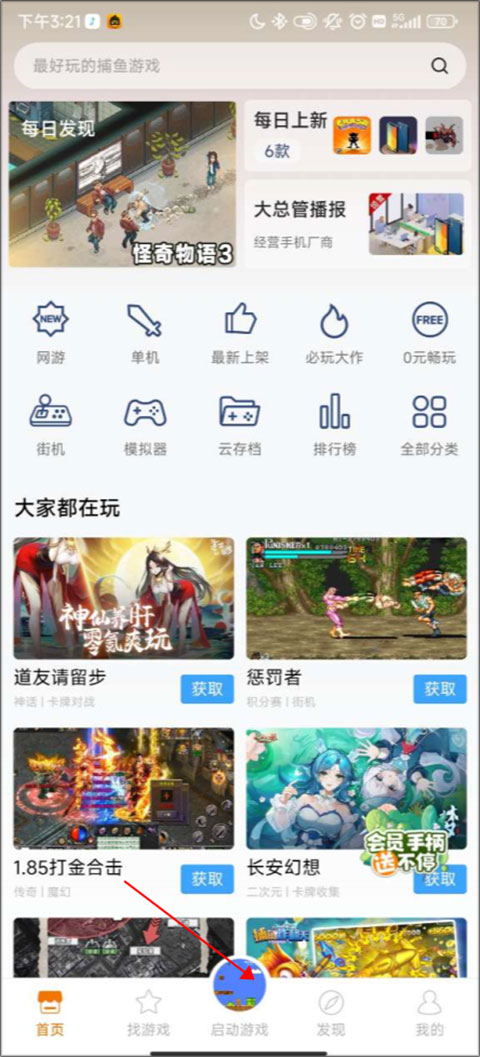 1首先,下载并安装悟饭游戏厅。安装完成后,进入其首页,然后点击启动游戏。