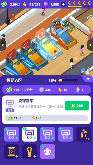 2、自由经营解锁不同的游戏设备,吸引男女老少来你这里放松。