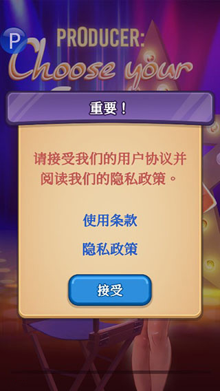 1、打开制作人选择您的明星最新版,我们先同意用户协议,