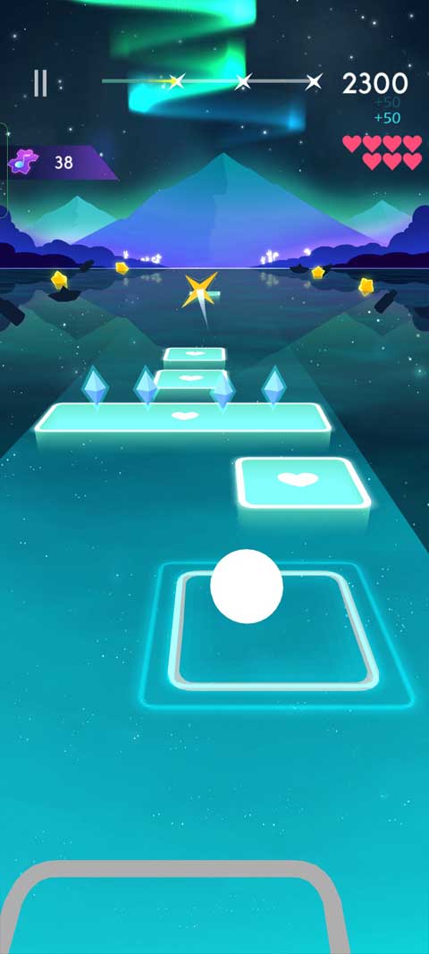 2、玩家在跳跃时,会碰到长方形方块,它能改变球体颜色。除了防止球体掉落,玩家还得收集蓝水晶与黄水晶。黄水晶如同消消乐里的星星般具有特定作用,蓝水晶则可用于解锁歌曲、主题等。