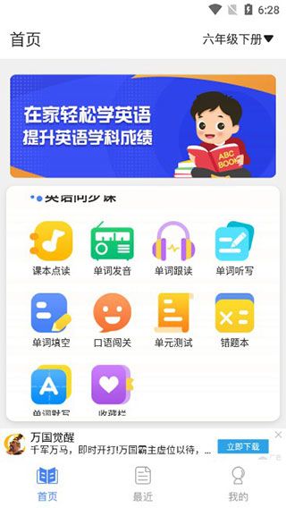 1、于本站下载并安装六年级下册英语点读app,进入首界面后,能看到一个功能模块。