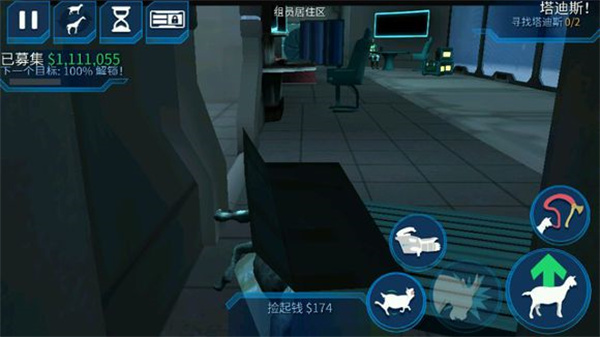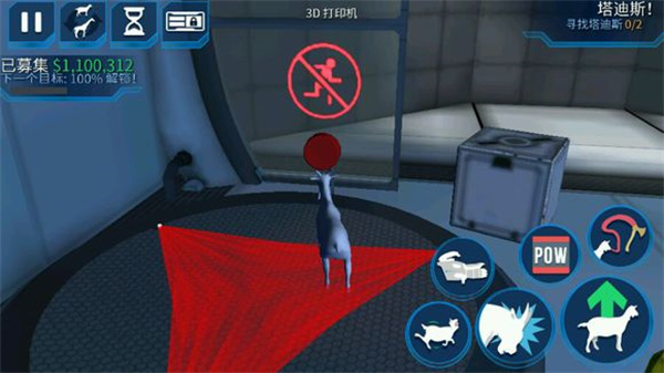 2、在游戏里,玩家要操控疯羊持续地募集资金。不少NPC头顶都有金钱标志,玩家只要将这些NPC顶撞,就能进行收集。