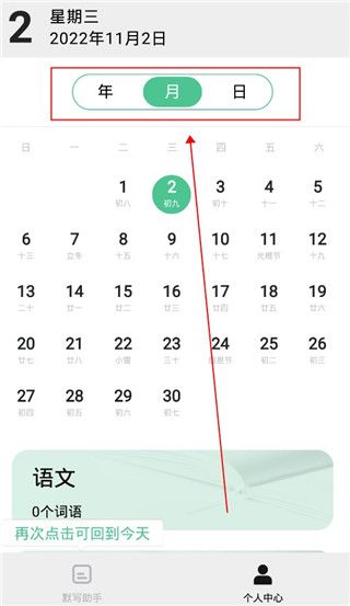 1. 开启软件,进入主页面后,在此处点击设置年、月、日,用以记录孩子每日的默写状况。