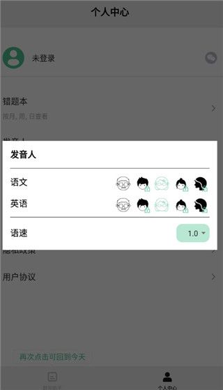 5、能够挑选适宜的听写时间间隔,并且有四种不同的发音人可供选择。