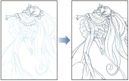 2、描线:以底稿为基础,使用钢笔工具描绘出流畅清晰地线稿。