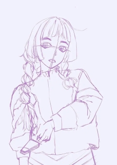 首先,大致勾勒出插画的布局以及人物的姿势。即便使用csp绘画软件进行创作,扎实的手绘基本功依旧至关重要,像定点、确定最高点与最低点、绘制倾斜线以及把握角度等,这些要点都不容忽视。在绘制底稿的第一步,先用粗略的形状勾勒出插图的整体设计。