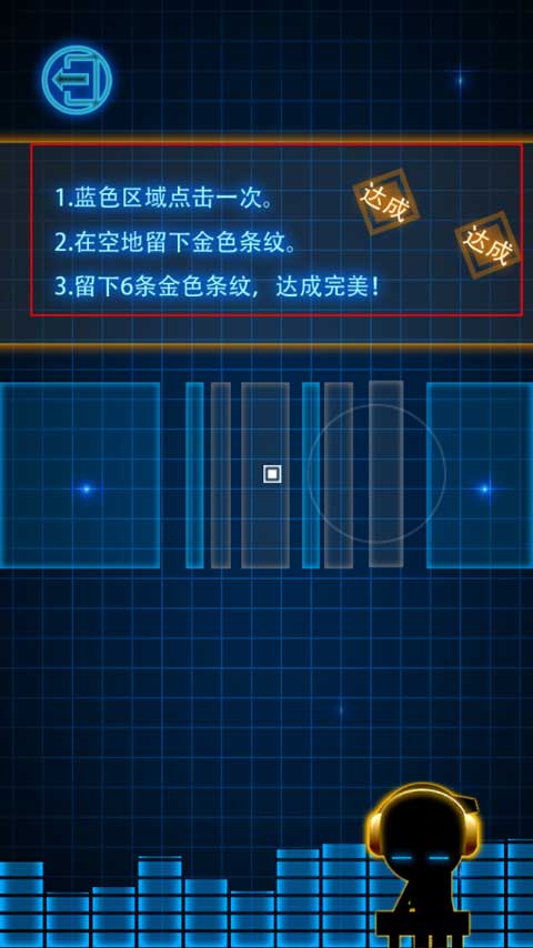 1、开启游戏后,第一步先游玩简单模式,以此熟悉游戏玩法。该模式的具体玩法为:1. 点击蓝色区域一次;2. 在空白处留下金色条纹;3. 成功留下6条金色条纹,即为完美通关。