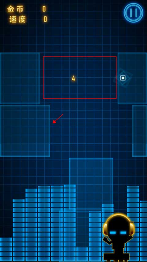 2、当方块从右向左移动时,玩家需注意,方框中明亮的地方不能点击屏幕,而红色框框选中的区域可以点击,若连续点击该区域,会显示金色条纹。
