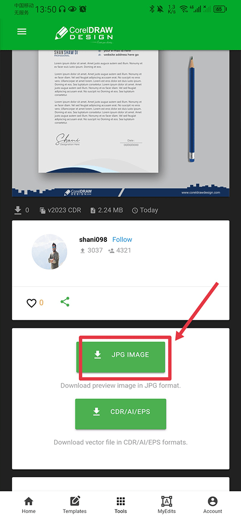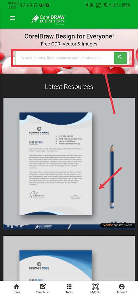 1、开启CDR设计软件手机版,于home界面里搜索或者挑选你想要下载的图片。