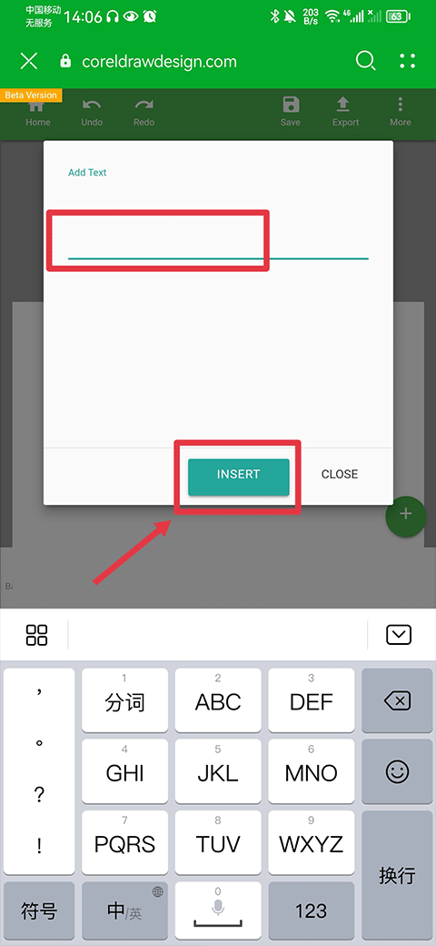 5、随后,就能瞧见模板上已有文字显现,而且你还能够借助文字周边的正方形来对文字大小进行调整。