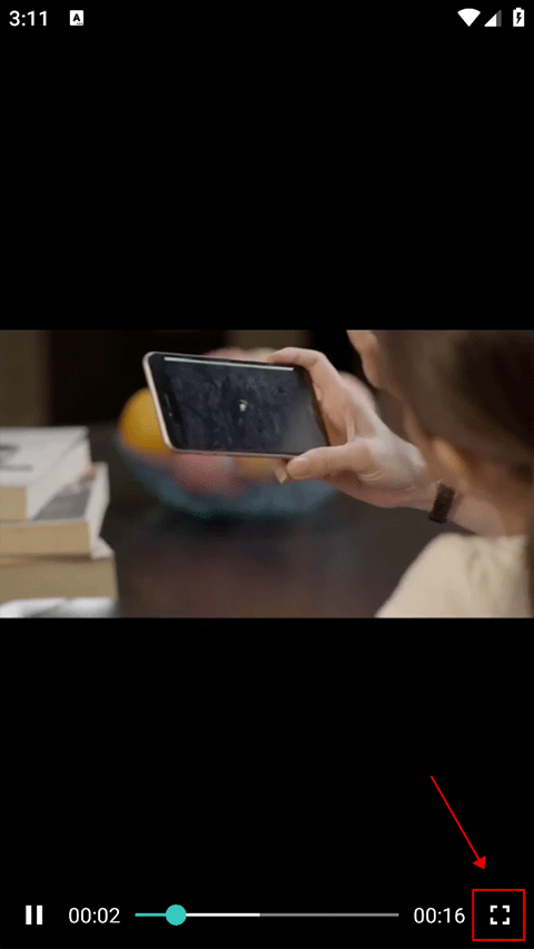 1、在视频播放界面轻点屏幕,进度条便会显示出来,接着点击进度条最右侧的方框。
