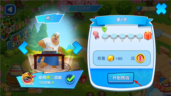 2、进入生日派对关卡,选择关卡,玩家需要根据客人的提示制作蛋糕;