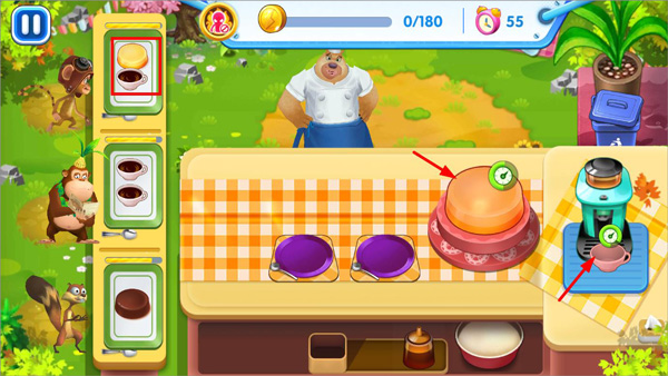4、进入制作环节,使用熊二的分秒必争技能开始,先给客人倒咖啡,制作蛋糕。
