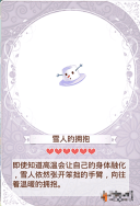 在紫色的帽檐之上,是一张白色的雪人面庞。它那棕色的眼睛虽谈不上炯炯有神,却能让人察觉到其中的孤独。那红色的鼻子,想必是一根小巧的胡萝卜。棕色的嘴巴微微开启,仿佛是看到了什么令人诧异之事。它的一双手臂向外伸展,像是要在这寒冷的冬日,给你一个温暖的拥抱。“即便清楚高温会致使自己的身体融化,雪人依旧张开那略显笨拙的手臂,憧憬着温暖的拥抱。”
