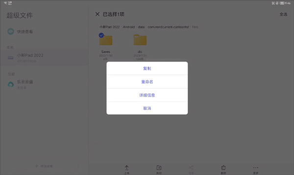 1、首先打开手机或者平板的文件夹,依次点击进入Android>data>com.nordcurrent.canteenhd>files文件夹,复制下方的Saves文件夹;