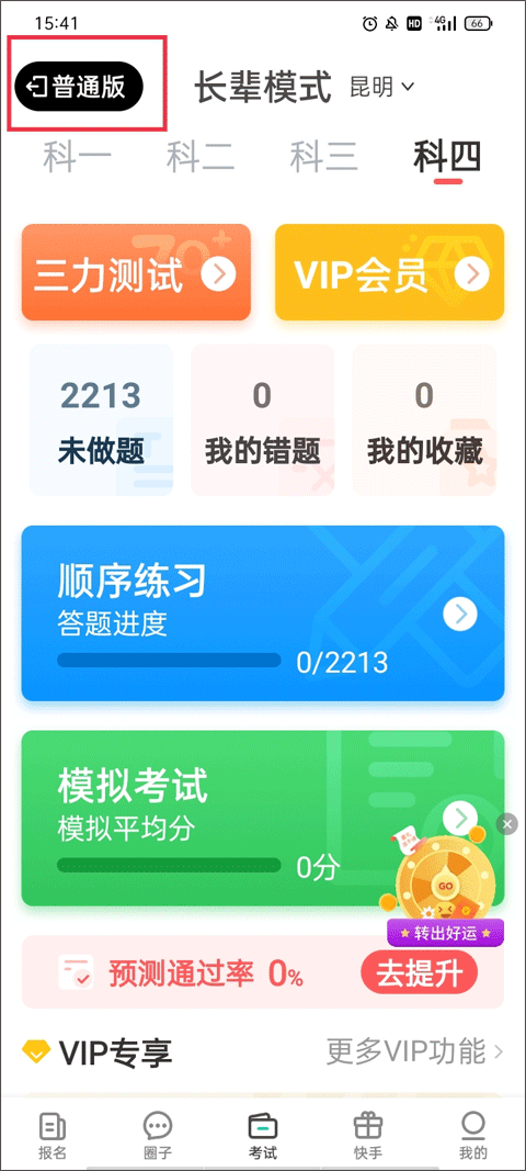 2、字体更大,刷题方便,长辈使用可以更加轻松,点击下方的“开启长辈模式”。