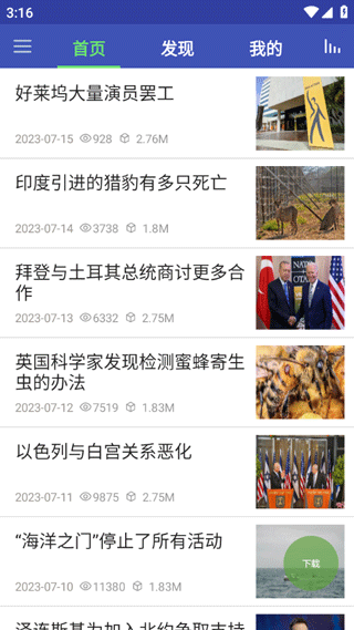 1. 开启欧美双语头条官方版本,进入首页便能瞧见软件中展示着近期的新闻。
