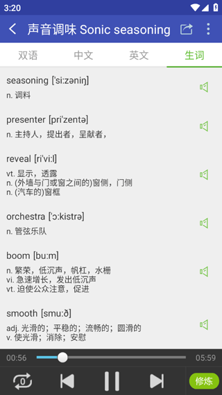 2. 听力训练:配备语音同步的双语字幕,支持单句循环播放,通过反复精听,能让你轻松掌握全部知识点。