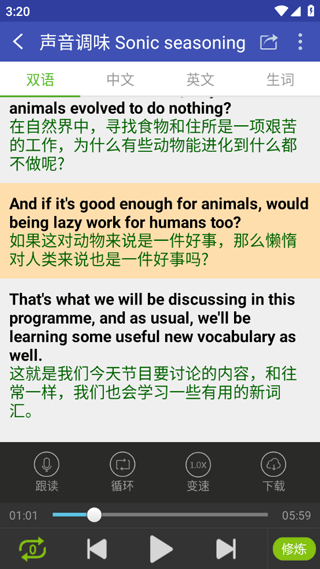 1、离线收听:支持MP3和中英字幕批量下载,不耗流量不花钱。