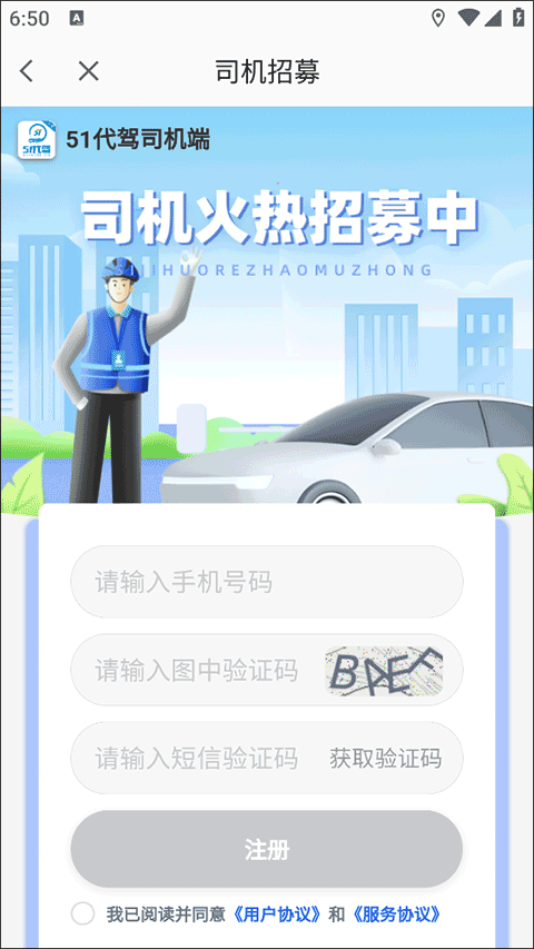 1、打开应用,在主页选择并点击“代驾司机招募”的选项;
