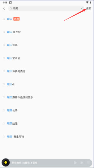 1、在搜索栏输入你想要下载的歌曲名后点击最右侧的搜索二字