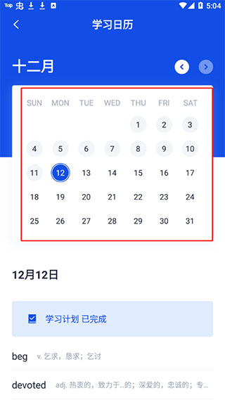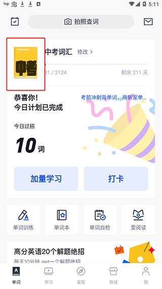 点击词书旁边的云朵图案即可下载实现离线背单词