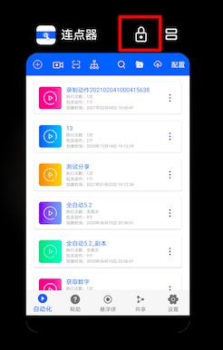 - 打开手机最近任务栏——找到“连点器”——点击“锁”的图标;