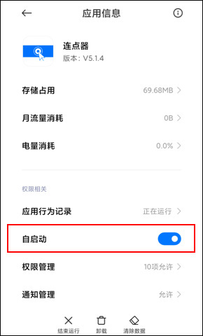 2、打开手机自带的“应用管家”,找到“连点器”——允许自启动