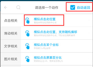3、按照第一步的方法,添加一个【模拟点击此位置】的动作,并备注好。