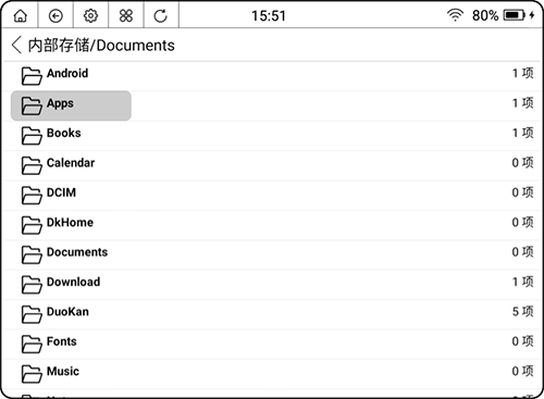 2、在计算机上将安装包复制到设备的「Apps」目录下;