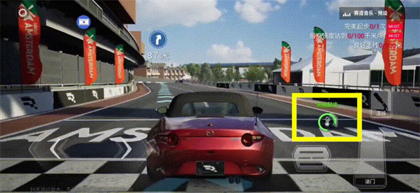 这里有个起步小技巧,在倒计时开始时,立刻按下油门键控制指针,使其来到白色区域附近,这样就不会手忙脚乱,轻松完成「完美起步」。