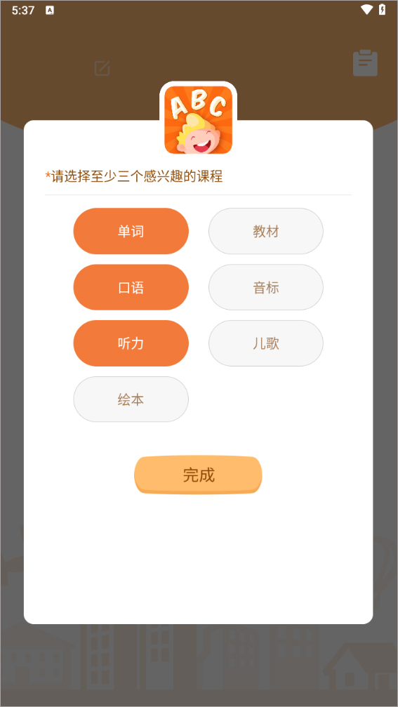 1、首先进入app前,给你家宝宝选择至少三个感兴趣的课程