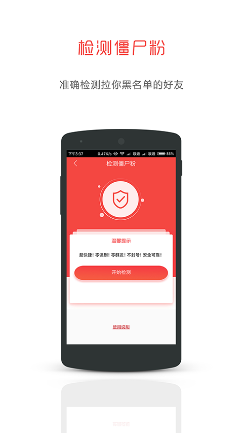 此外,该应用提供检测僵尸粉功能。通过超快捷、零误删、零群发、不封号的方式,帮助用户安全可靠地检测出不再活跃或已注销的微信好友,让用户更精准地管理好友列表,提升营销效果。有需要的用户可在本站免费下载使用。