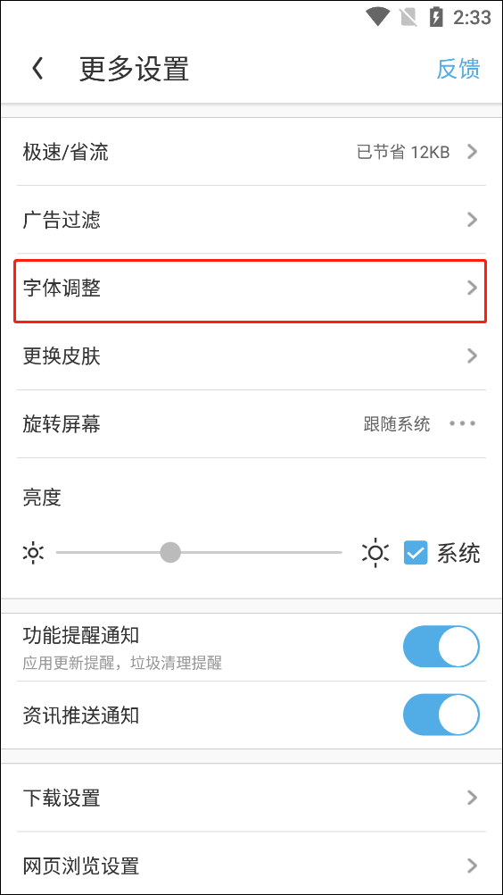 4、进入“字体大小”,滑动滑块可以调字体的大小。