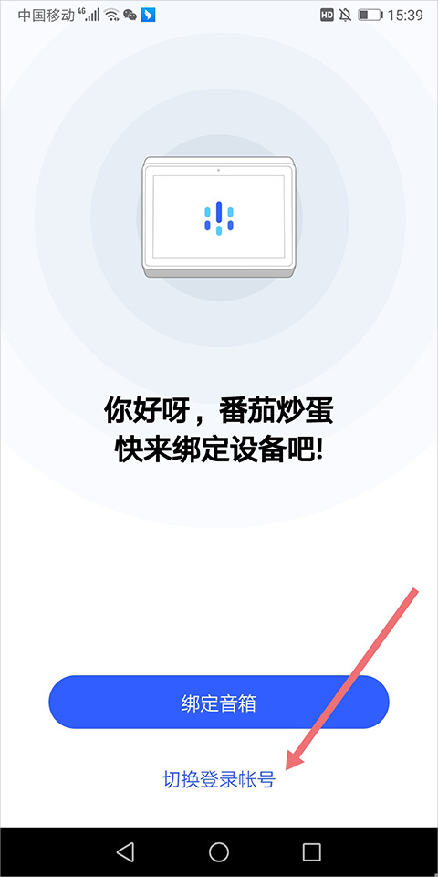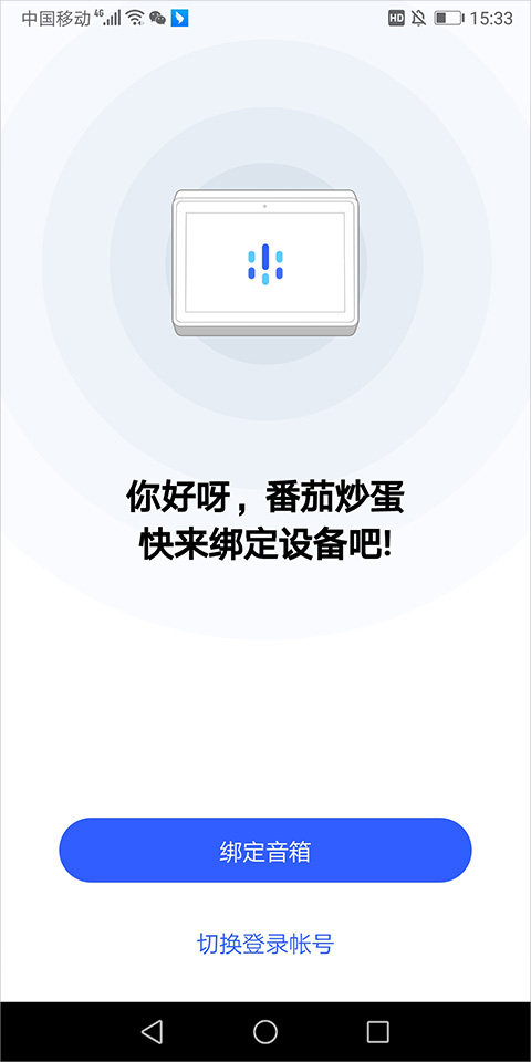 3、联网成功后,会出现绑定提示及二维码。此时,在手机上打开并登录腾讯叮当app,点击【绑定音箱】。