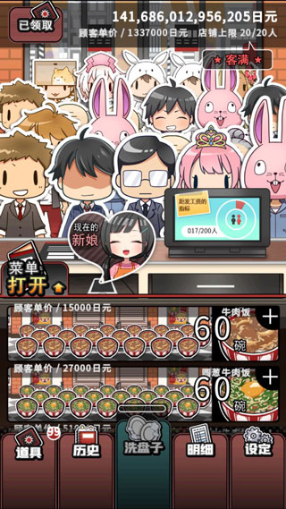 从游戏角度看,游戏难度并不高,玩家通过点击顾客就能获取收益。此外,还能研究更多菜品,并提高菜品的制作数量,这同样能带来收益。值得一提的是,使用优惠券可以显著加快顾客的到访速度,这是获取工资的关键所在。